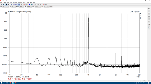 Below are two distortion plots. Frequency (20Hz - 20kHz) is on the horizontal axis, and distortion (in 20dB steps) is on the vertical axis. The top spectrum plot shows the Class-D module by itself; its harmonic distortion is low but predominantly third and fifth order - more typical of a solid-state Class-AB amplifier. I understand now why I thought it to be cold and clinical - not the pleasing predominantly second order harmonic distortion of a single-ended Class-A tube amplifier. How to fix this?