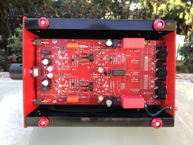 Here are first pictures of our prototype RIAA pre-amp that we were showing at the recent StereoNET Hi-Fi show in Melbourne. The preamp has either two switched moving-magnet phono inputs, or one moving-magnet and one moving-coil when fitted with Lundahl LL9226 step-up transformers. We hope to have the preamp kitset ready for purchase very soon.
